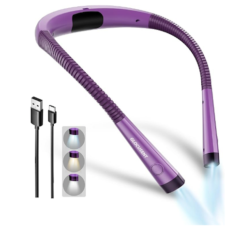 Have you ever seen these LED neck lights? For under twenty dollars, you can get six levels of brightness and three different colors of light from a rechargeable, bendable light that fits around your neck!
